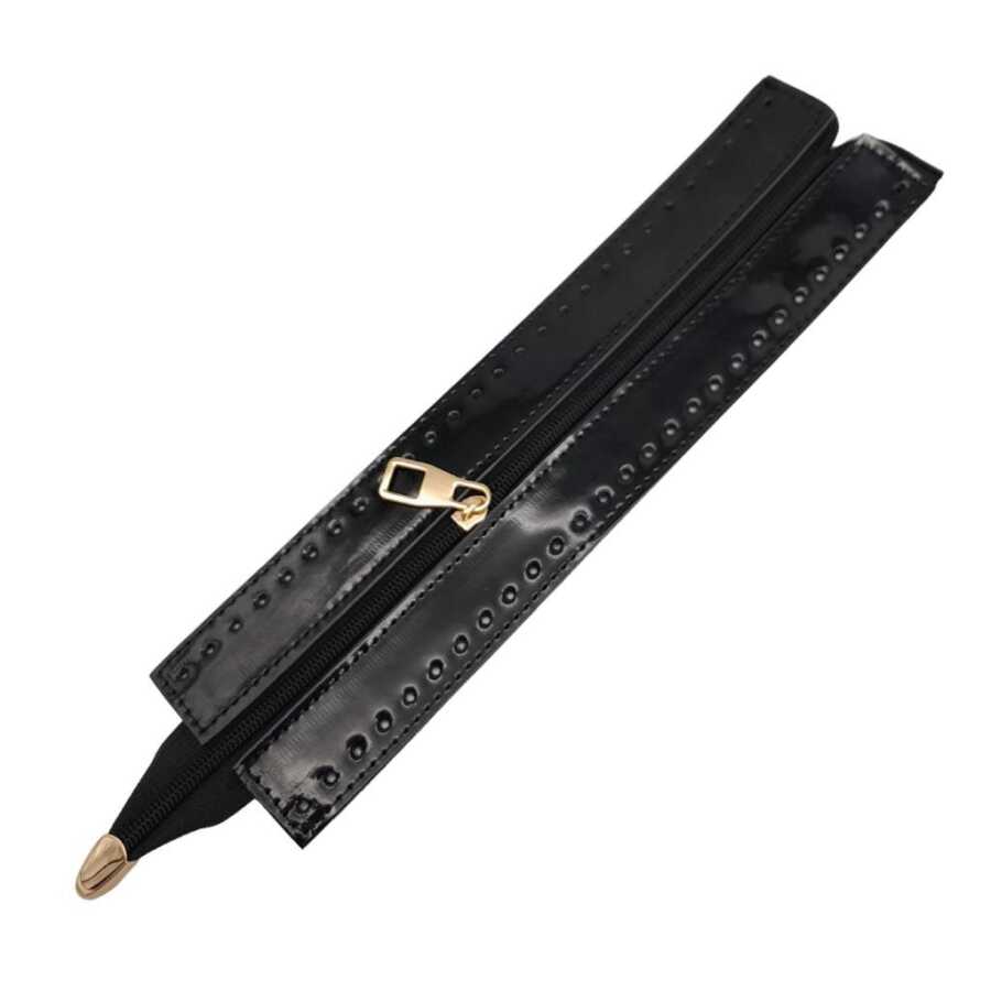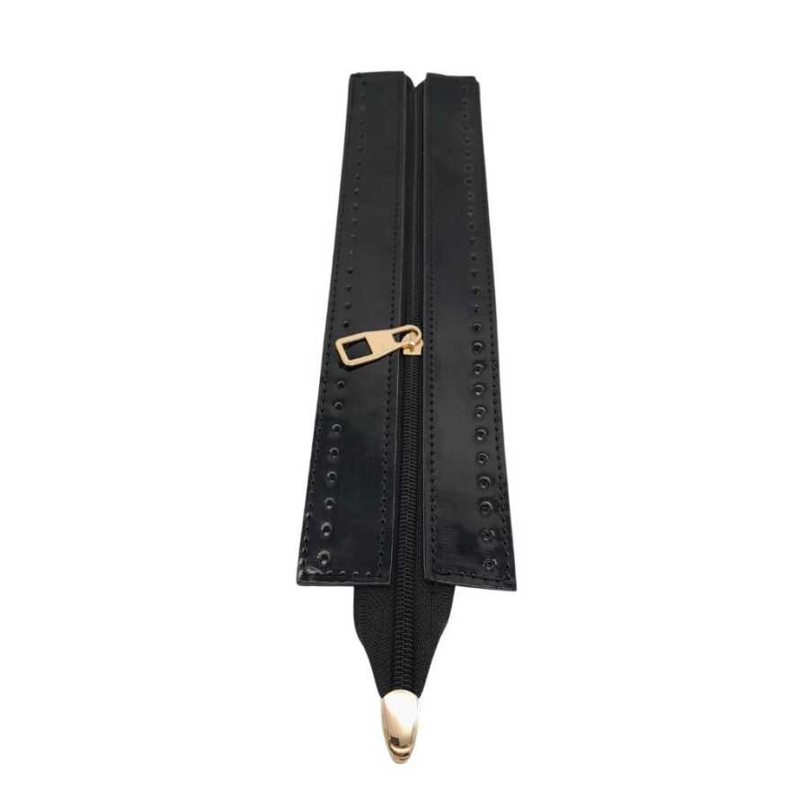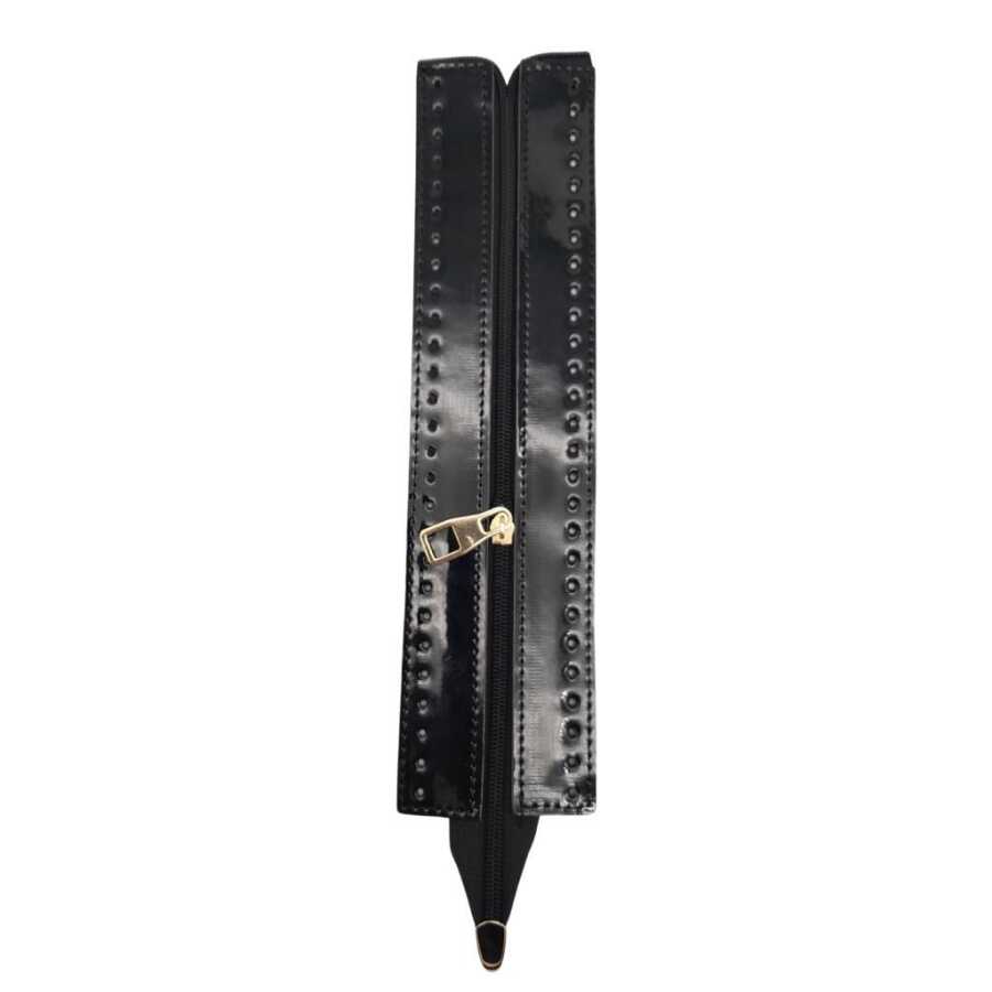 Angel Çanta Aksesuar Rugan Derili 28 cm Siyah Renk Fermuar Light Gold Metalli