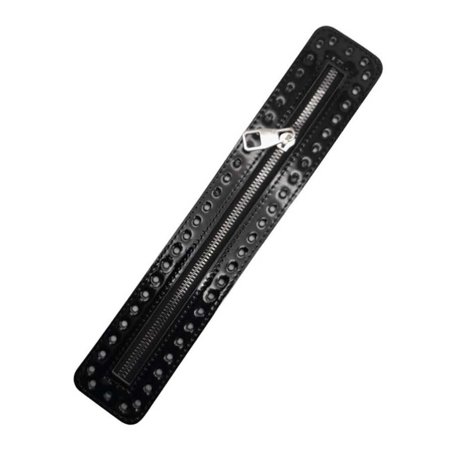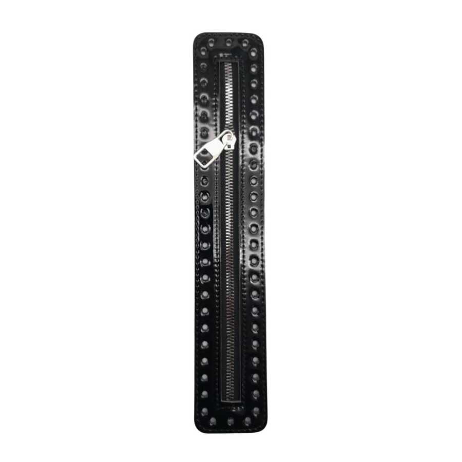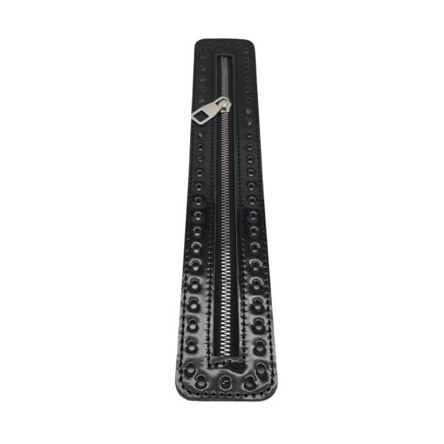 Ölçüsü: 30x5.5 cm Rugan deri kullanılmıştır. Örgünün kendi ipi ile montajı yapılabilir. Kenarlarındaki delikler tığ ile monte etmek için tasarlanmıştır. Dikerek de montaj yapılabilir. Tek olarak gönderilir.