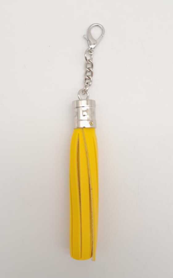 Angel Çanta Aksesuar Sarı Suni Deri Kovanlı Püskül Gümüş Metalli