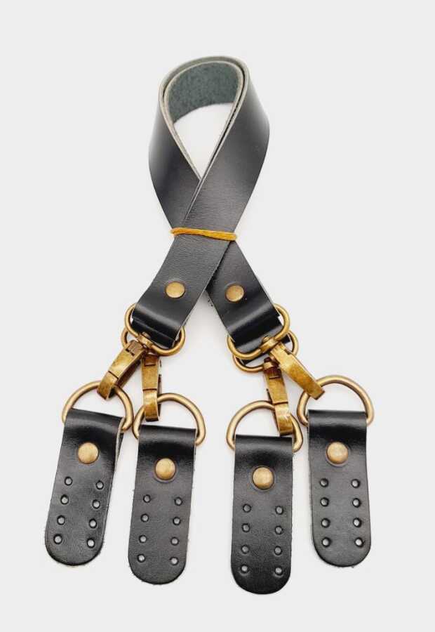 Angel Çanta Aksesuar Siyah Gerçek Deri 55 Cm Çift Sap Misu Model Antik Metal