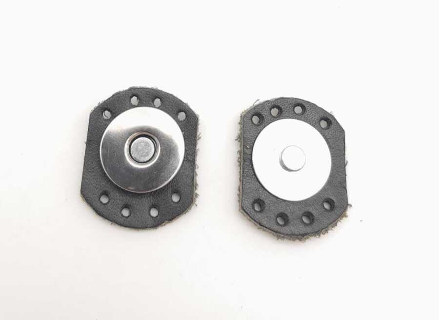 Angel Çanta Aksesuar Siyah Renk Gerçek Derili Oval Kenar Mıknatıslı Çıtçıt Gümüş Metalli