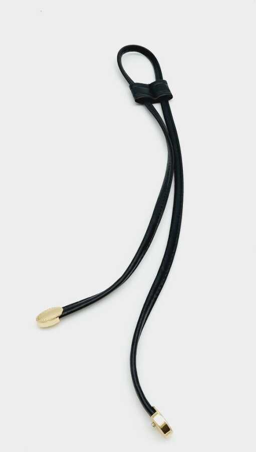 Angel Çanta Aksesuar Siyah Suni Deri Dikişli Büzgü Light Gold Metalli