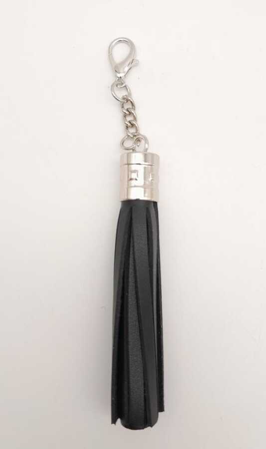 Angel Çanta Aksesuar Siyah Suni Deri Kovanlı Püskül Gümüş Metalli