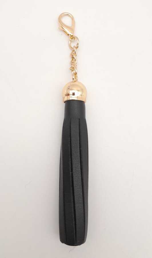 Angel Çanta Aksesuar Siyah Suni Deri Kovanlı Püskül Light Gold Metalli