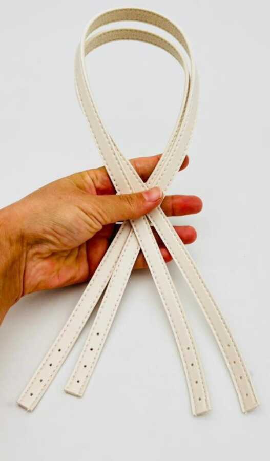 Angel Çanta Aksesuar Slim Model 70x1.2 cm Suni Deri Krem Renk Çift Çanta Sapı