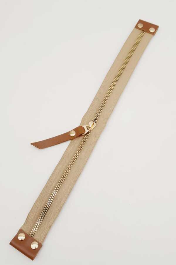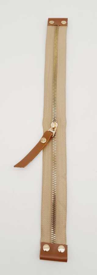 Angel Çanta Aksesuar Stobu Sütlü Kahve Renk Gerçek Derili Bej Fermuar Light Gold Metal