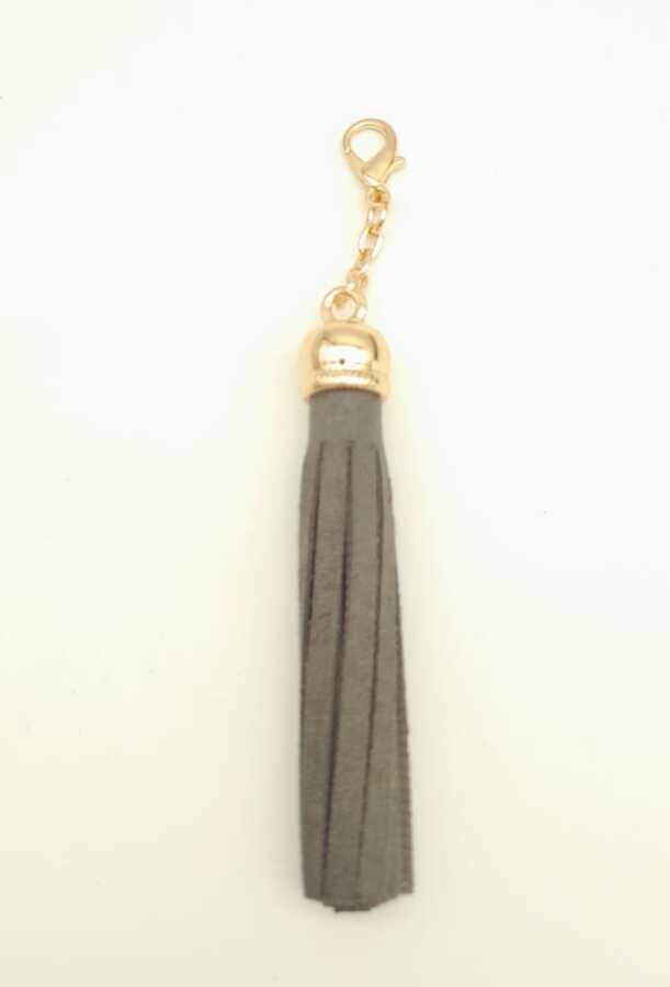 Angel Çanta Aksesuar Süet Nubuk Deri Kovanlı Püskül Gri Light Gold Metalli
