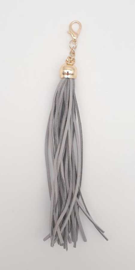 Angel Çanta Aksesuar Süet Nubuk Deri Kovanlı Uzun Püskül Gri Renk Light Gold Metalli