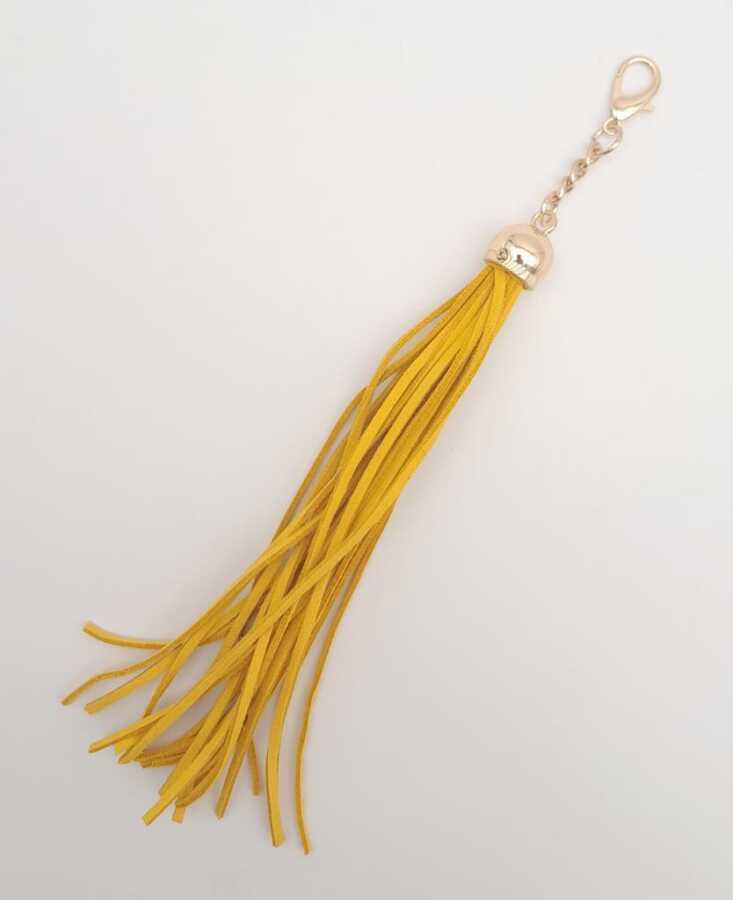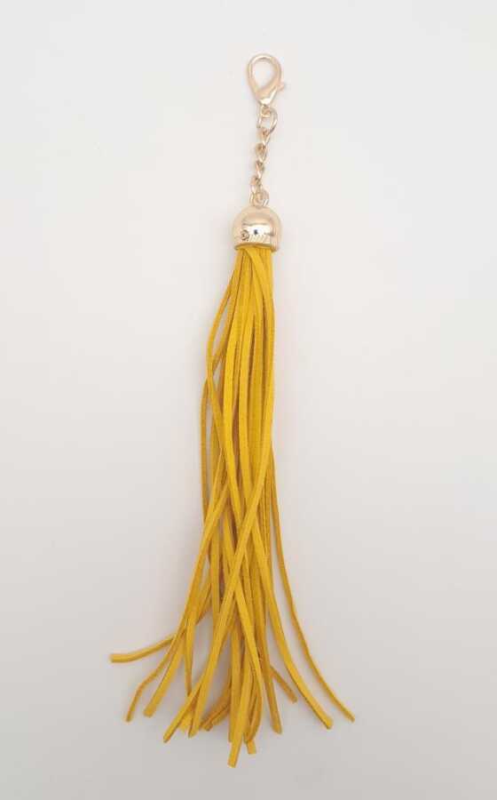 Angel Çanta Aksesuar Süet Nubuk Deri Kovanlı Uzun Püskül Hardal Renk Light Gold Metalli