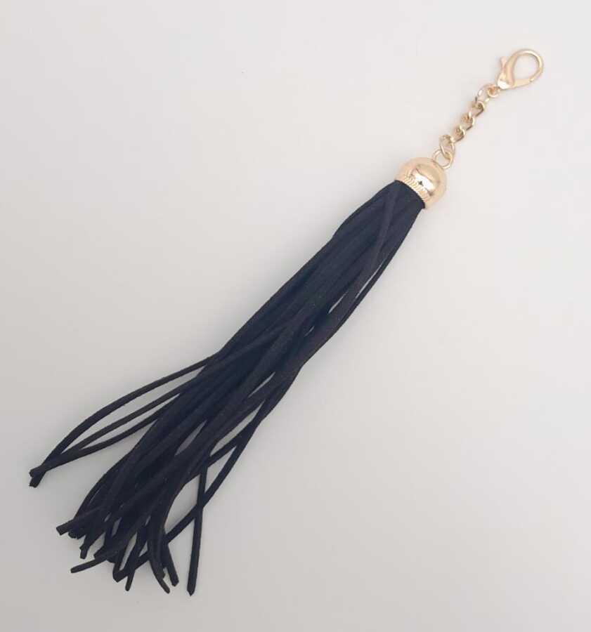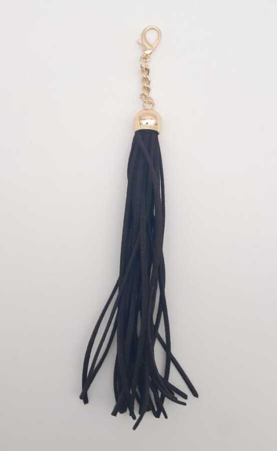 Angel Çanta Aksesuar Süet Nubuk Deri Kovanlı Uzun Püskül Siyah Renk Light Gold Metalli