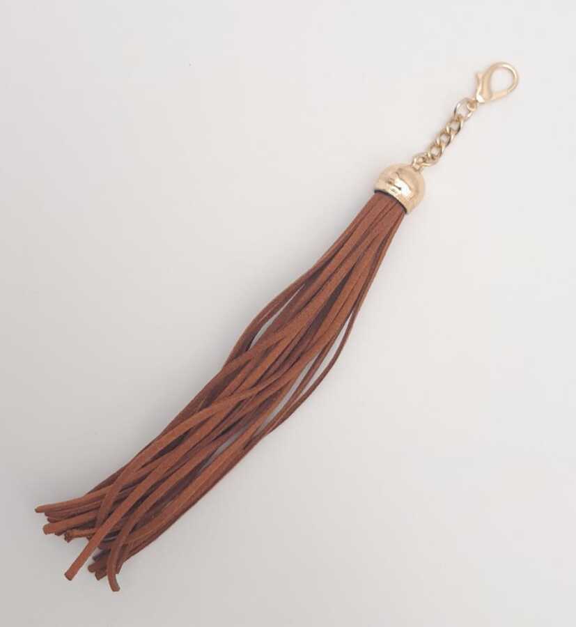 Angel Çanta Aksesuar Süet Nubuk Deri Kovanlı Uzun Püskül Taba Renk Light Gold Metalli