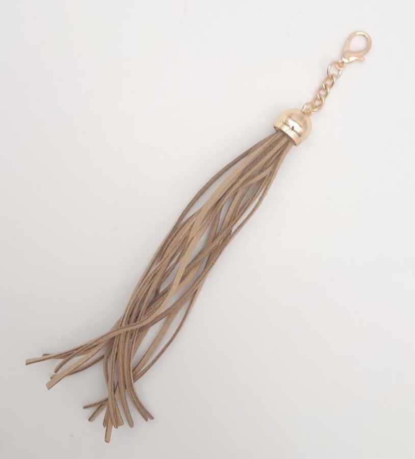 Angel Çanta Aksesuar Süet Nubuk Deri Kovanlı Uzun Püskül Vizon Renk Light Gold Metalli