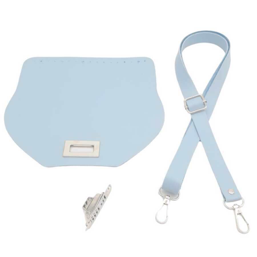 Angel Çanta Aksesuar Suni Deri 21x19 cm Kapaklı ve Ayarlı Saplı Çanta Seti Bebe Mavi Renk Gümüş Metalli