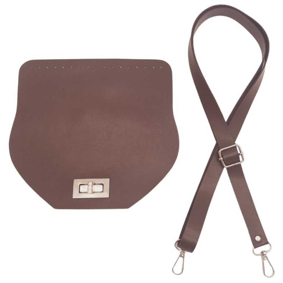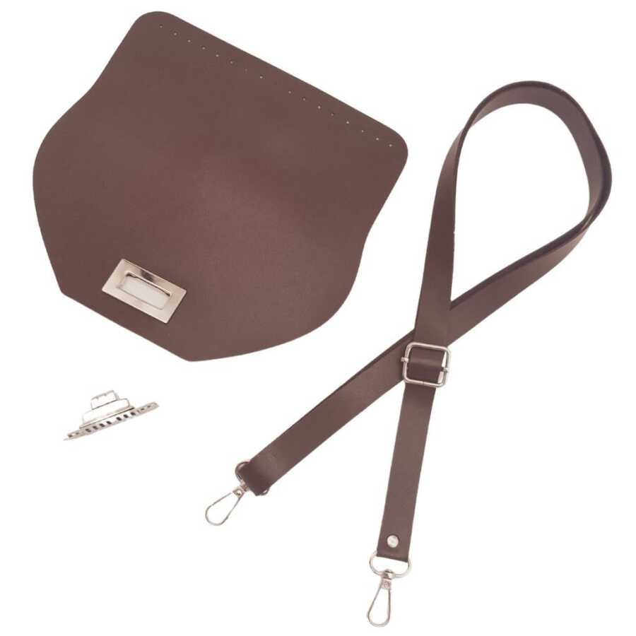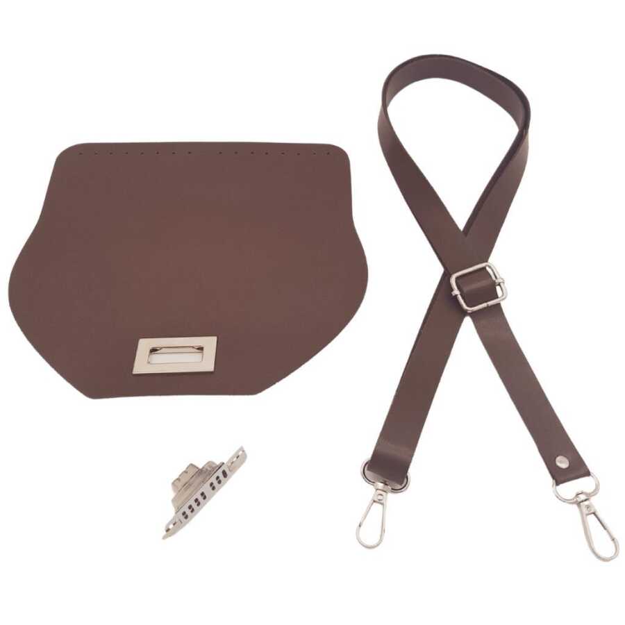 Angel Çanta Aksesuar Suni Deri 21x19 cm Kapaklı ve Ayarlı Saplı Çanta Seti Koyu Kahverengi Gümüş Metalli