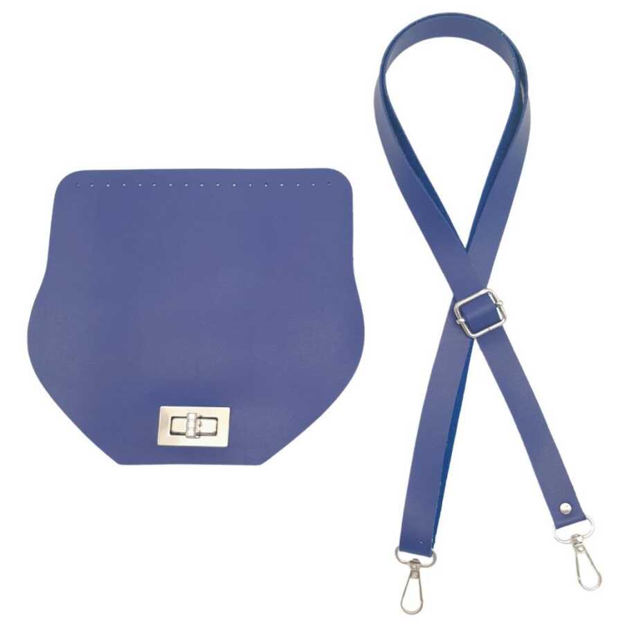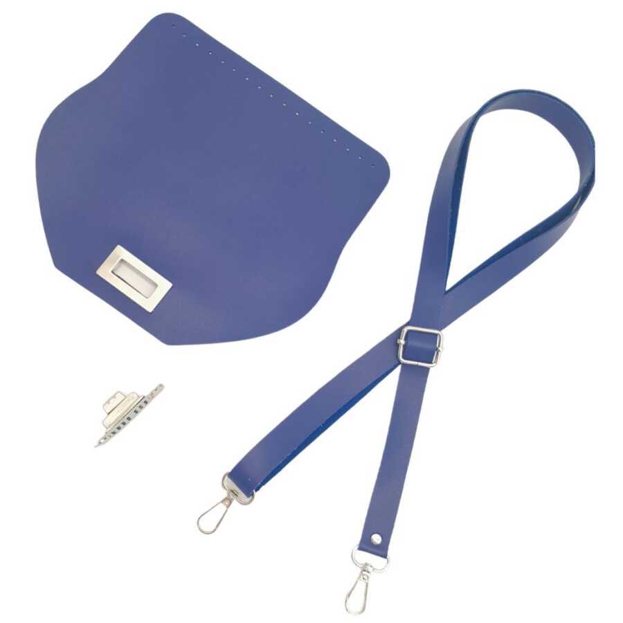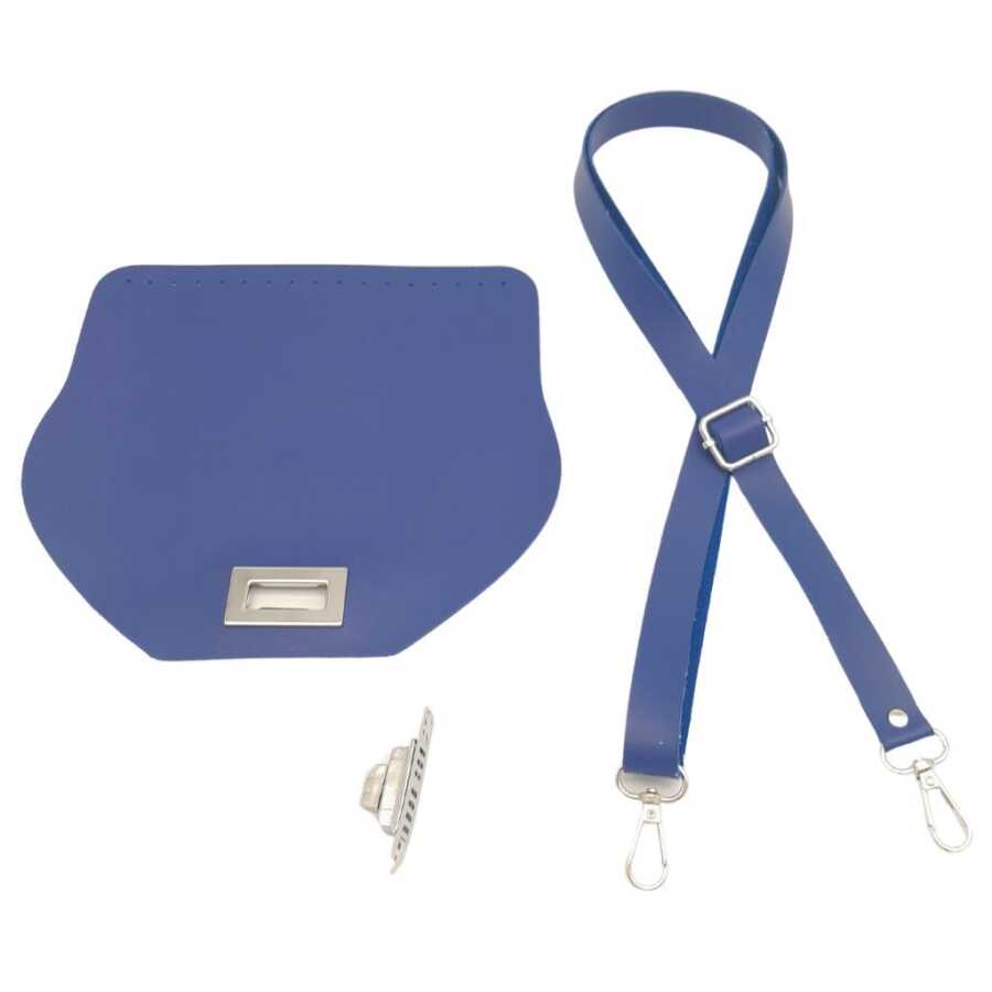 Angel Çanta Aksesuar Suni Deri 21x19 cm Kapaklı ve Ayarlı Saplı Çanta Seti Mavi Renk Gümüş Metalli