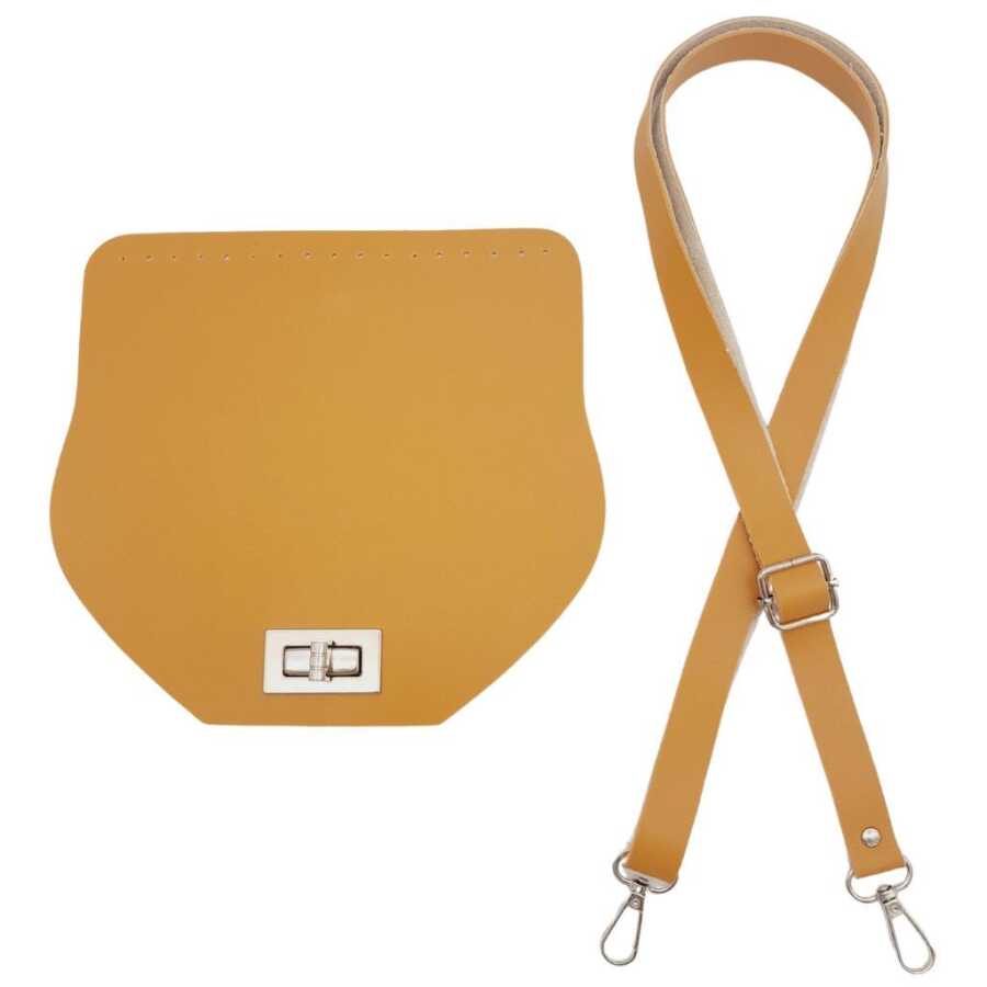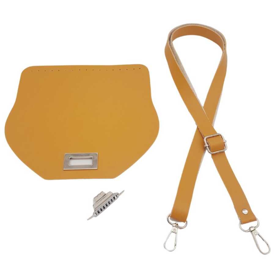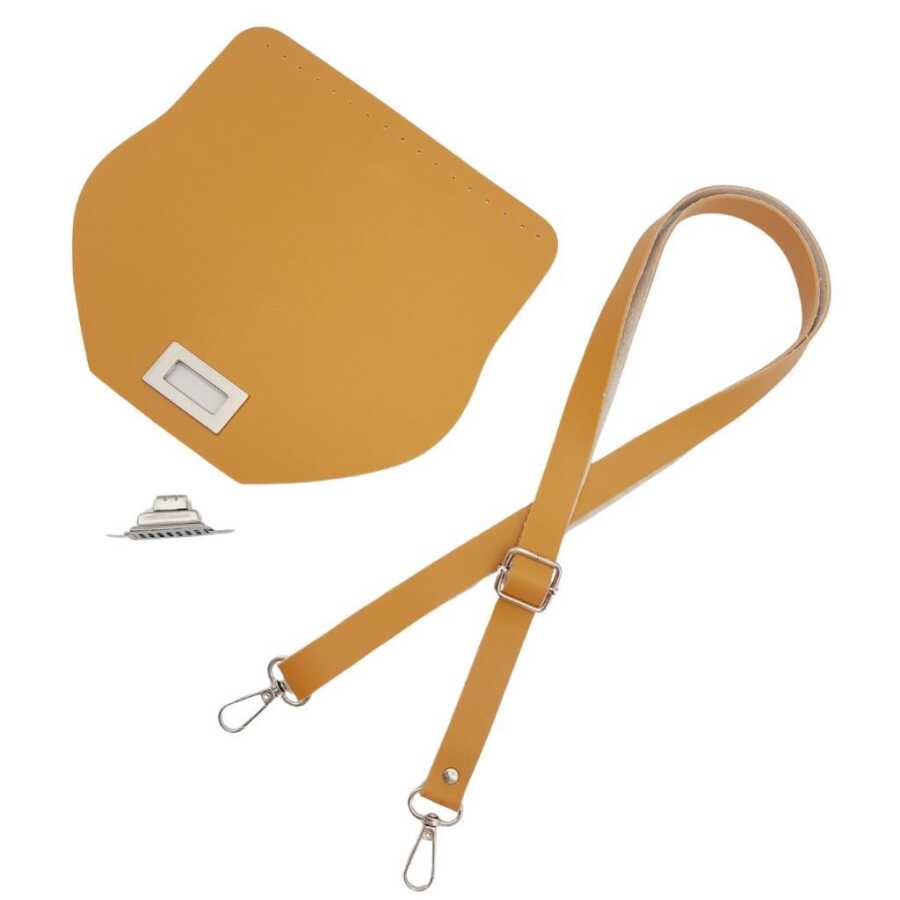 Angel Çanta Aksesuar Suni Deri 21x19 cm Kapaklı ve Ayarlı Saplı Çanta Seti Hardal Renk Gümüş Metalli