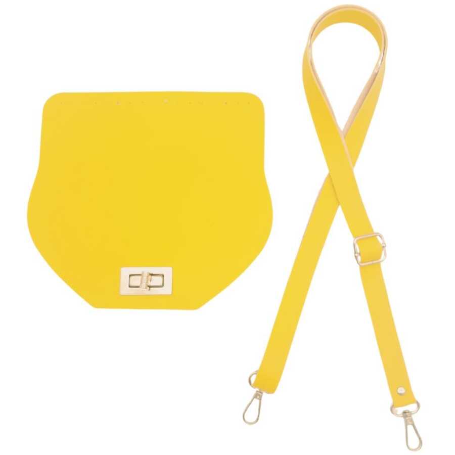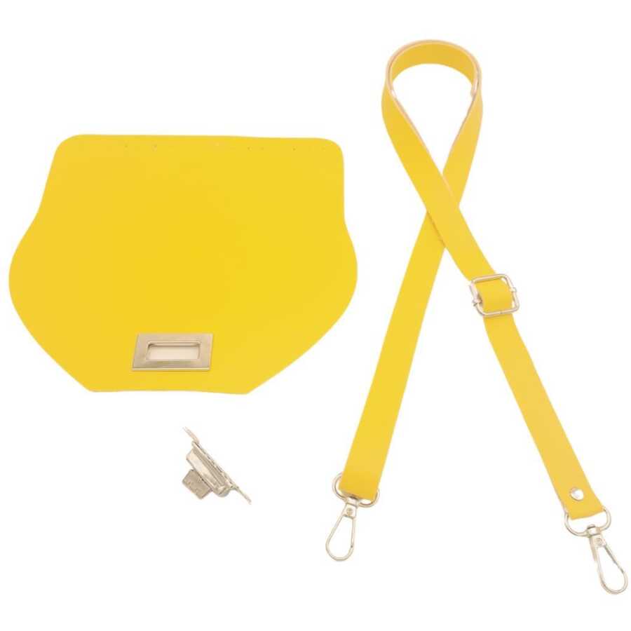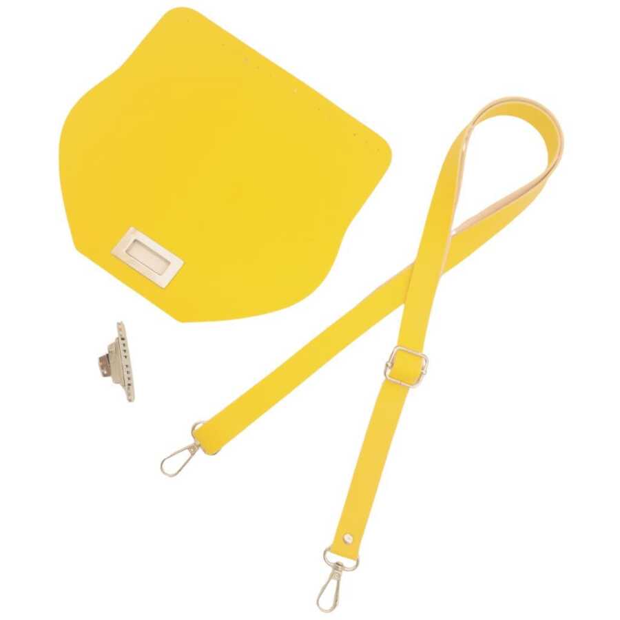 Angel Çanta Aksesuar Suni Deri 21x19 cm Kapaklı ve Ayarlı Saplı Çanta Seti Sarı Renk Gümüş Metalli