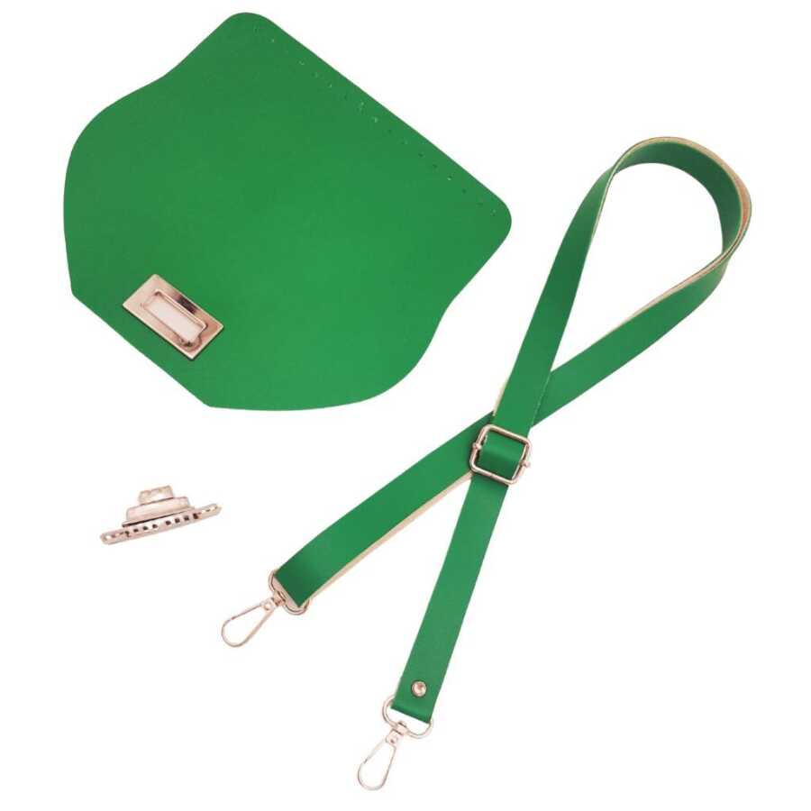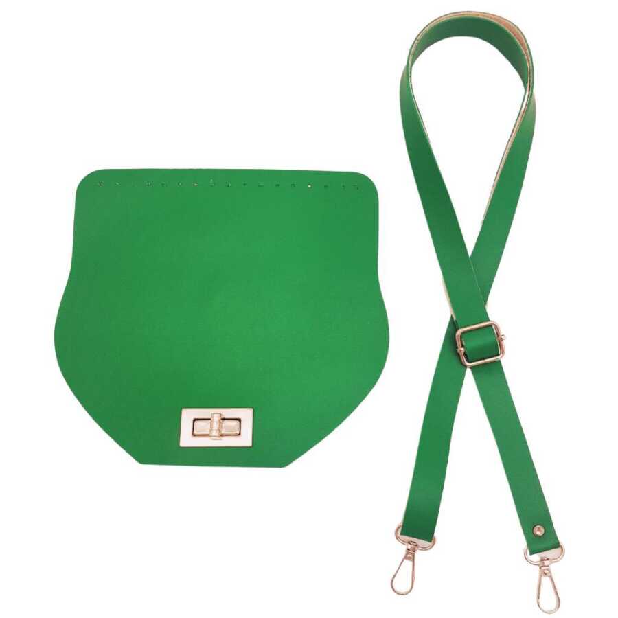Angel Çanta Aksesuar Suni Deri 21x19 cm Kapaklı ve Ayarlı Saplı Çanta Seti Yeşil Renk Gümüş Metalli
