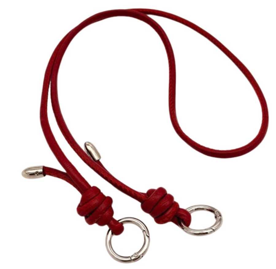 Angel Çanta Aksesuar Suni Deri 5 mm Düğüm Model Tek Çanta Sapı 85 Cm (Kırmızı Renk Gümüş Metal)