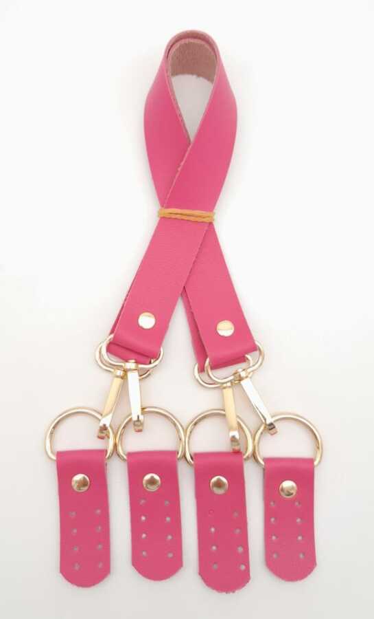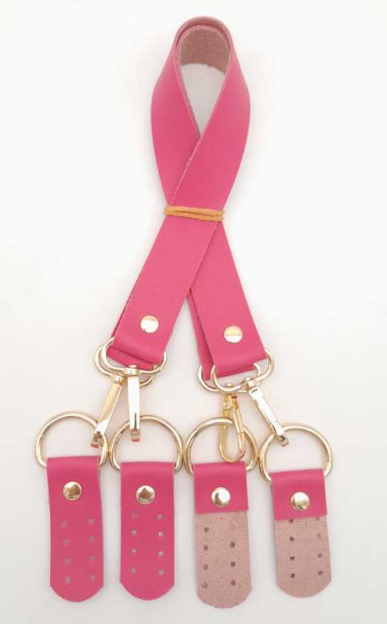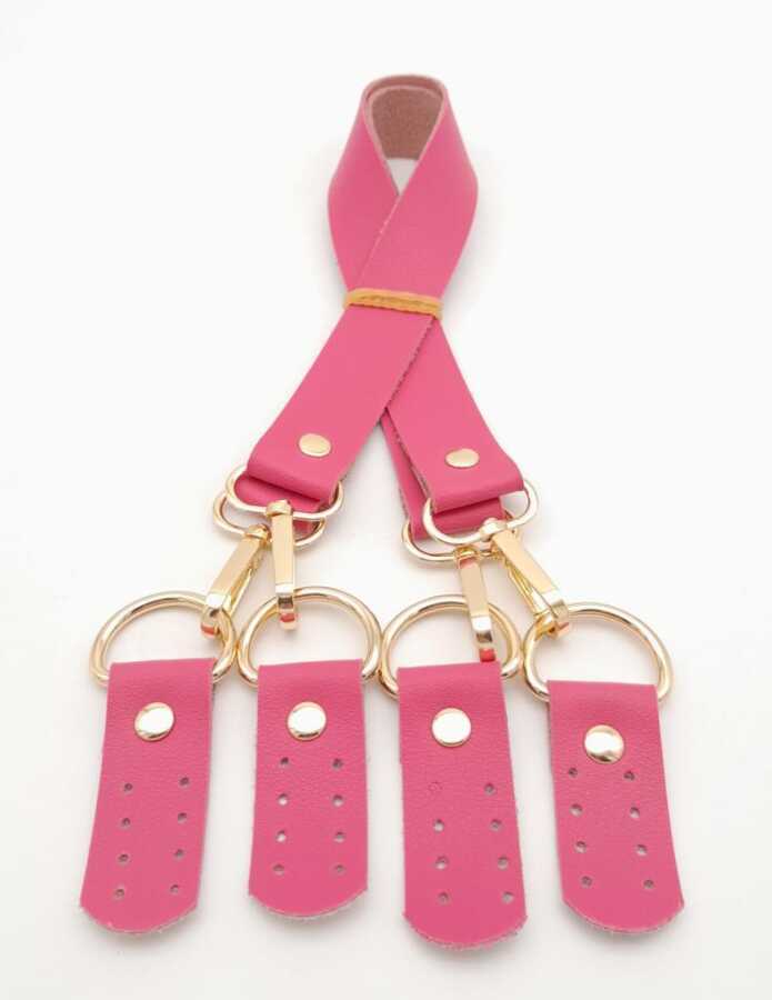 Angel Çanta Aksesuar Suni Deri 55 Cm Misu Model Çift Sap Fuşya Renk Light Gold Metal