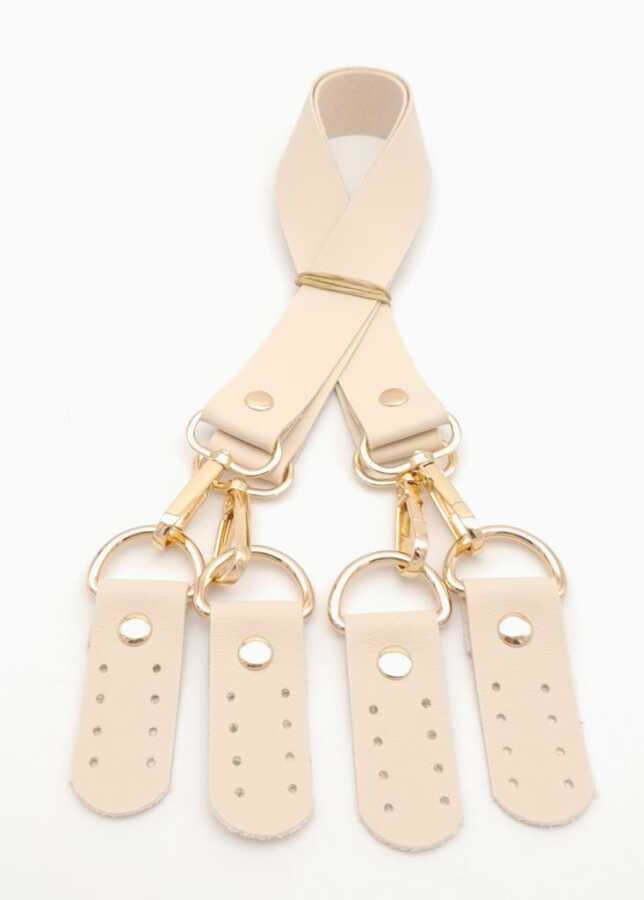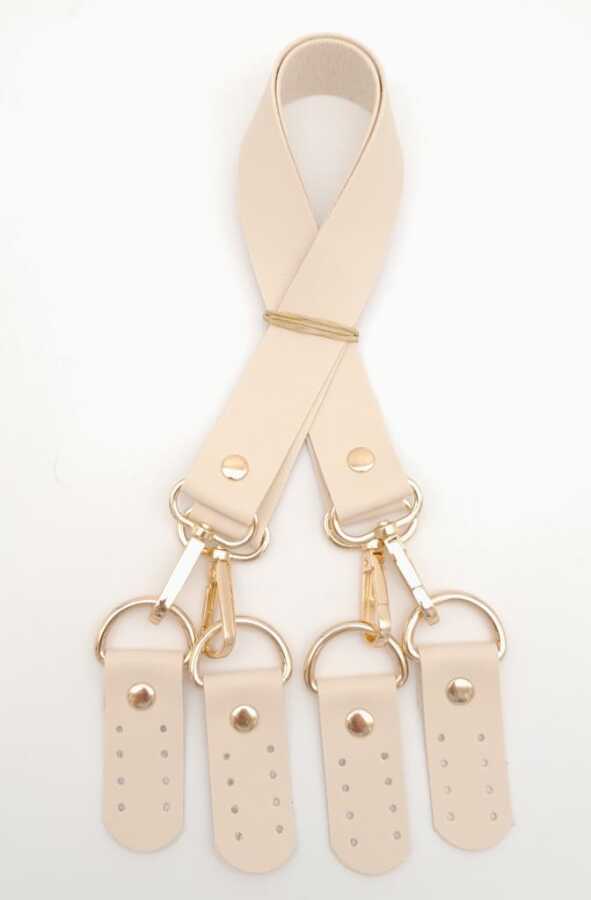 Angel Çanta Aksesuar Suni Deri 55 Cm Misu Model Çift Sap Krem Renk Light Gold Metal
