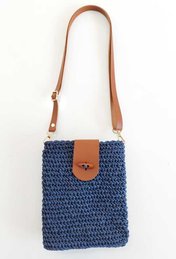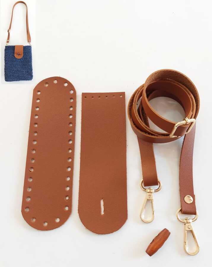 Ahşap Düğmeli Mini Bag Cep Telefonu Seti