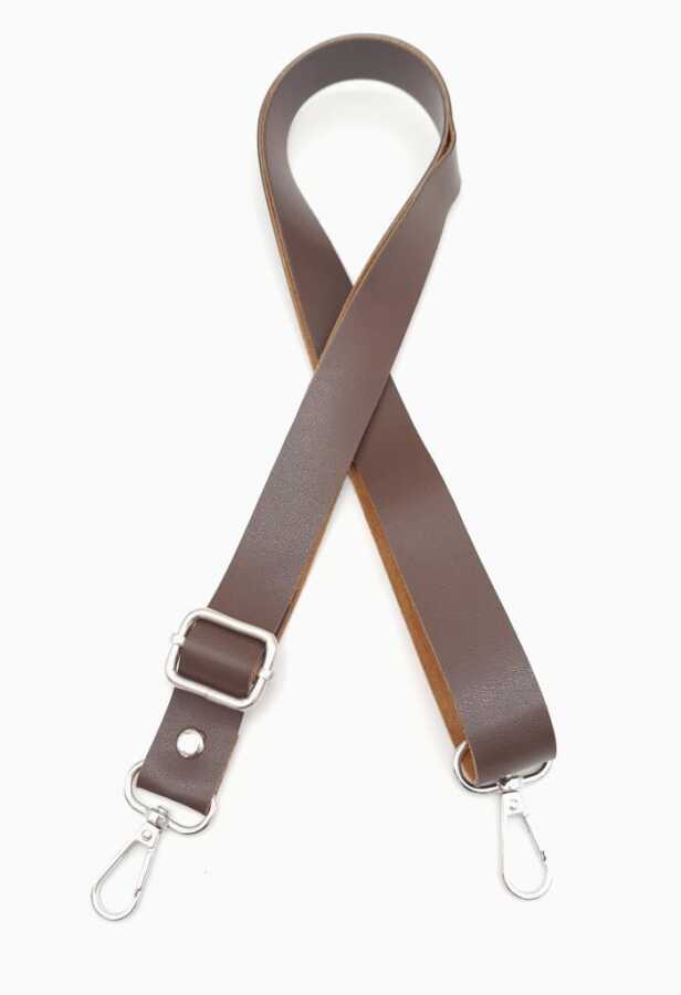 Angel Çanta Aksesuar Suni Deri Ayarlı Çanta Sapı 120X2.4 Cm Kahverengi Gümüş Metal