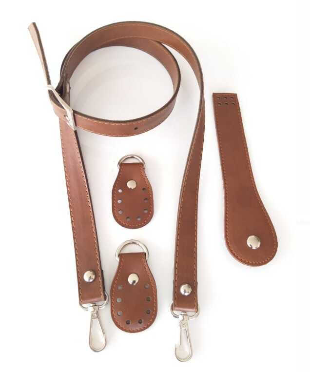 Suni deriden üretilmiştir. Aparatları Gümüş Renk. Suni deri ayarlı sap yaklaşık 120 cmdir. Örgü çantaya monte edilebilmesi için böcelere delik açılmıştır. Kapak mıknatıslıdır. kapağın iki parçası da örgü çantaya monte edilebilecek şekilde yapılmıştır. Böcelerdeki d halkalara kancalardan takılarak kullanılır.