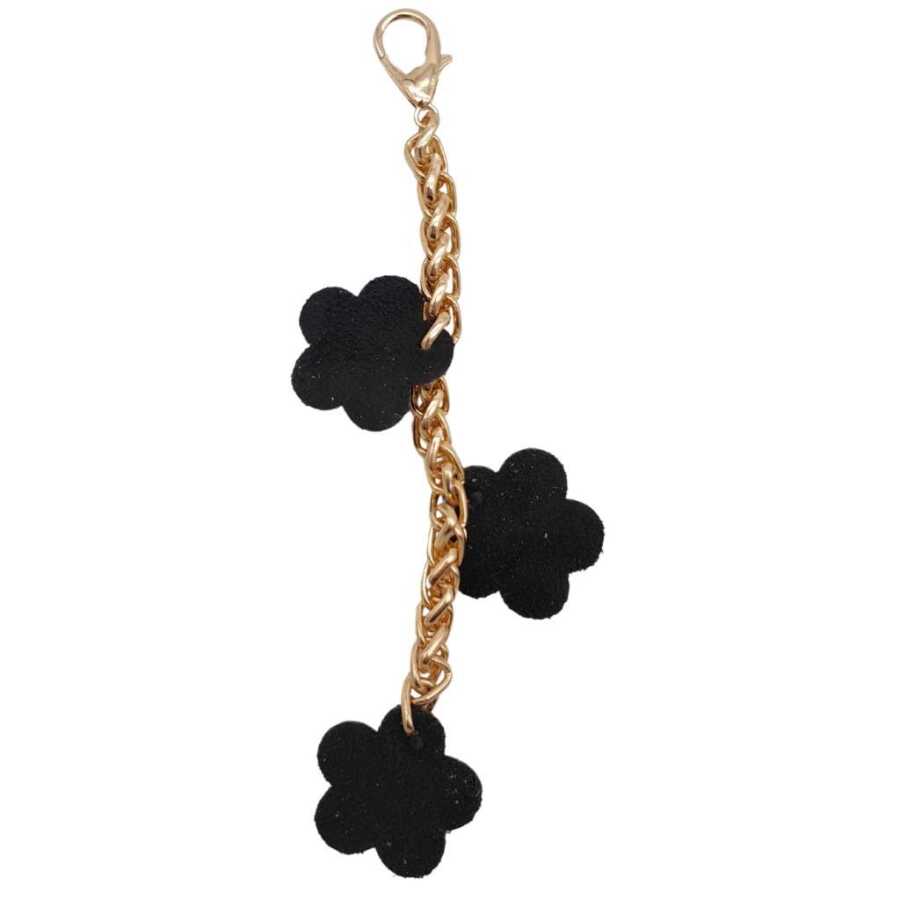 Angel Çanta Aksesuar Suni Deri Çiçek Süs Püskül Sarkaç Süs Siyah Renk Light Gold Zincirli