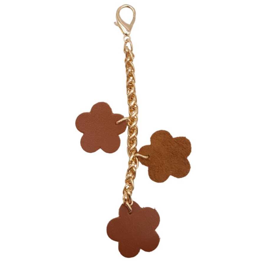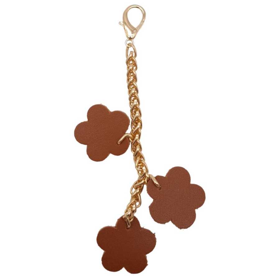 Angel Çanta Aksesuar Suni Deri Çiçek Süs Püskül Sarkaç Süs Taba Renk Light Gold Zincirli