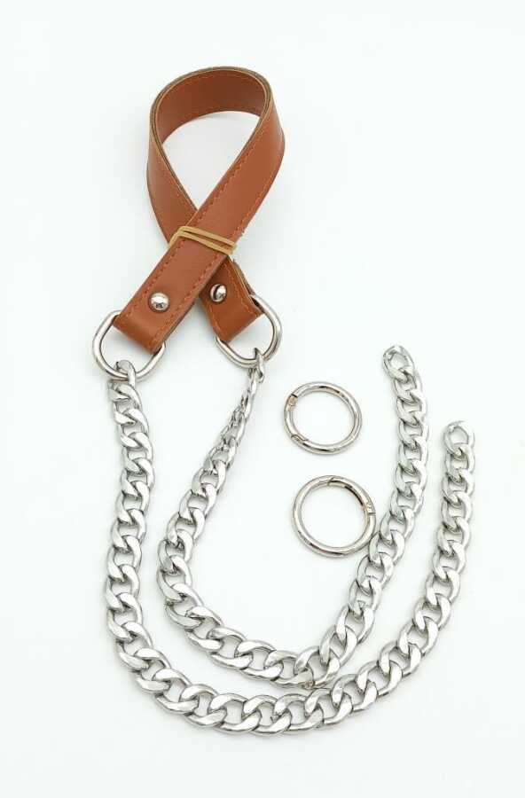 Angel Çanta Aksesuar Suni Deri Dikişli Gümüş Zincirli Açık Taba Renk Çanta Sapı