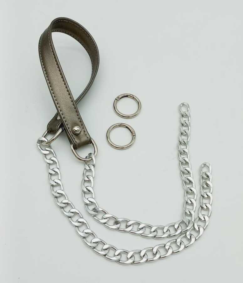 Angel Çanta Aksesuar Suni Deri Dikişli Gümüş Zincirli Parlak Gri Renk Çanta Sapı