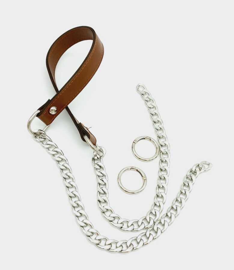 Deri Kısım Uzunluk: 38 cm Deri Genişlik: 2 cm Halkalar Hariç Toplam Uzunluk: 100 cm Zincir: Gümüş Renk