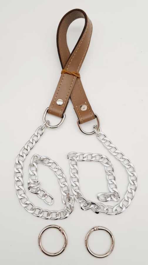 Angel Çanta Aksesuar Suni Deri Dikişli Gümüş Zincirli Vizon Renk Çanta Sapı