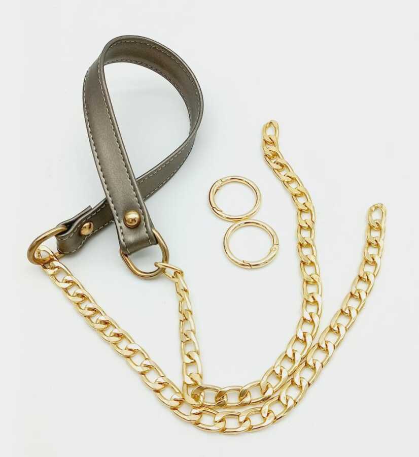 Angel Çanta Aksesuar Suni Deri Dikişli Parlak Gri Renk Light Gold Zincirli Çanta Sapı