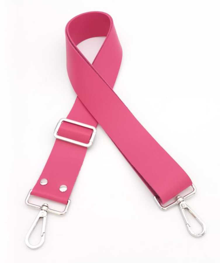 Angel Çanta Aksesuar Suni Deri Fuşya 120X4 Cm Çanta Sapı Kalsap Gümüş Metalli