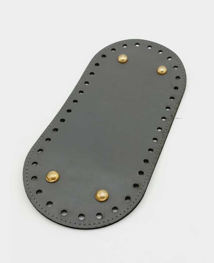 Angel Çanta Aksesuar Suni Deri Gri Renk 25X12 cm Oval Çanta Tabanı (Light Gold Aparatlı)