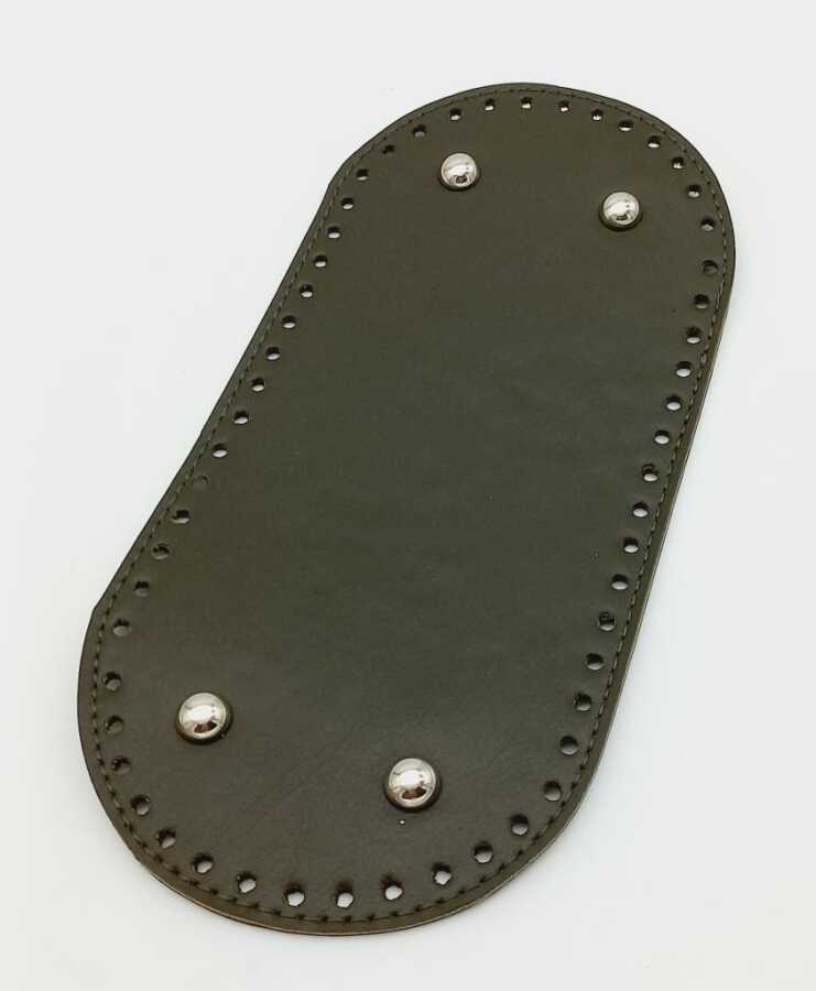 Angel Çanta Aksesuar Suni Deri Haki Renk 25X12 cm Oval Çanta Tabanı (Gümüş Aparatlı)