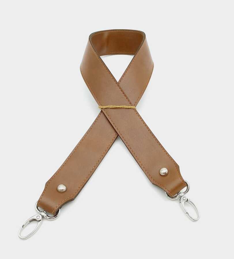 Angel Çanta Aksesuar Suni Deri Kalın Sap 70X3,3 Cm Taba Gümüş Metalli