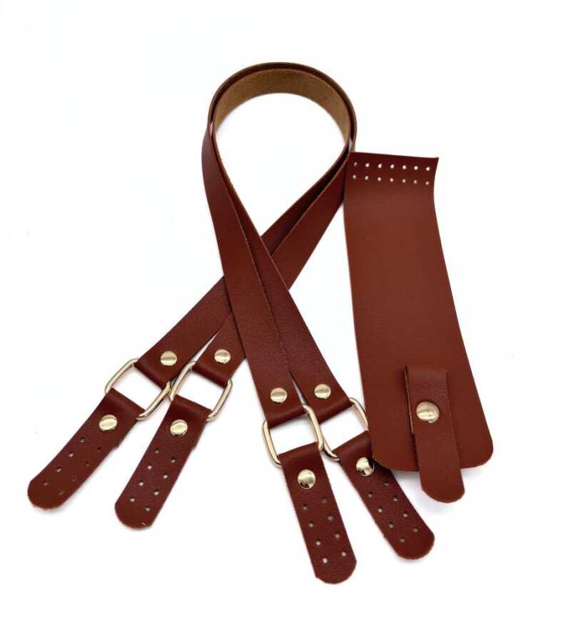 Suni Deri Çanta Seti Deri: Suni Deri 70x2 cm sap 21x6 cm kapak. Mıknatıslı Çanta kapağında dikme delikleri mevcuttur. Çanta kapağını bu deliklerden örgü çantalarınıza rahatça dikebilirsiniz.