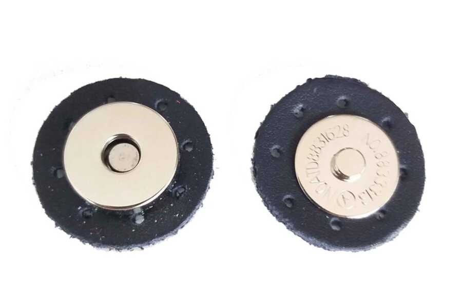 Suni derili mıknatısın Suni deri kısımla birlikte çapı 3 cmdir Örgüye monte edilebilmesi için kenarlarında delikleri açılmıştır