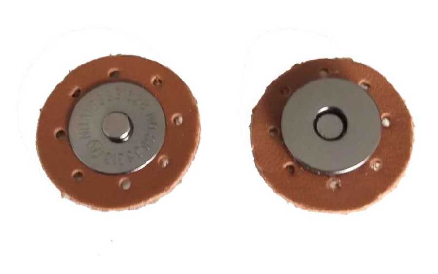 Suni derili mıknatısın Suni deri kısımla birlikte çapı 3 cmdir Örgüye monte edilebilmesi için kenarlarında delikleri açılmıştır