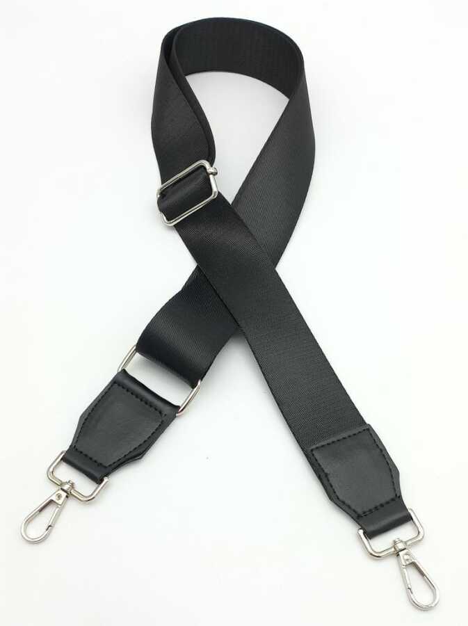 Angel Çanta Aksesuar Suni Derili Polyester Kolon 120X4 Cm Siyah Gümüş Metalli