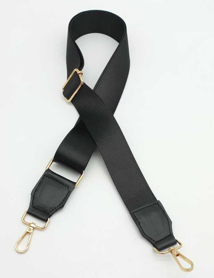 Angel Çanta Aksesuar Suni Derili Polyester Kolon 120X4 Cm Siyah Light Gold Metalli