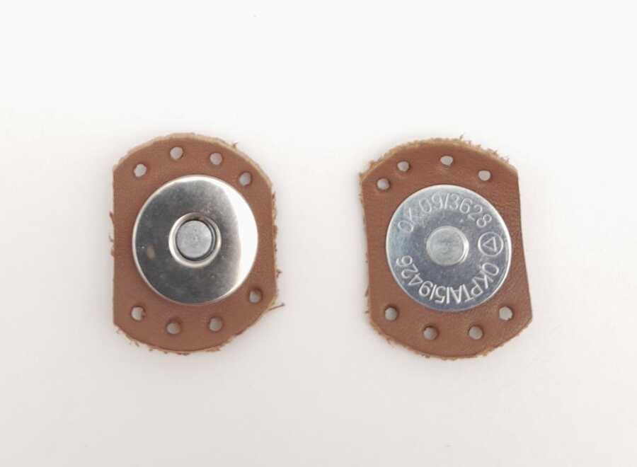 Çap: 3 cm Genişlik: 2,3 cm Dikilebilmesi için kenarlarında delikleri açılmıştır. Gerçek deri kullanılmıştır Mıknatıslı Çıtçıt Kapakların içine tutturmak için kullanılabilir hoş bir görüntü olur ve mıknatıs olarak kapağın kapalı kalmasını sağlar.