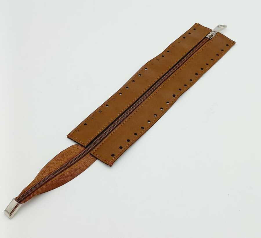 Angel Çanta Aksesuar Taba Renk 28 Cm Derili Fermuar Gümüş Metalli