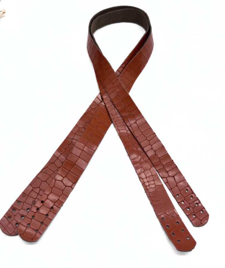 Angel Çanta Aksesuar Taba Renk Croco Desen Deri 70x2 cm Çift Çanta Sapı