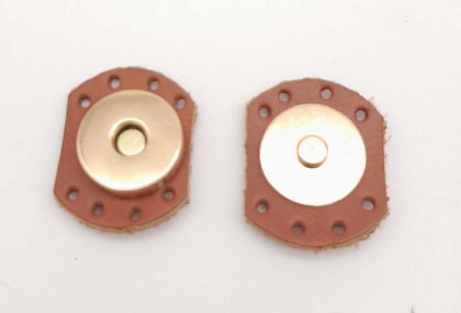 Angel Çanta Aksesuar Taba Renk Gerçek Derili Oval Kenar Mıknatıslı Çıtçıt Light Gold Metalli