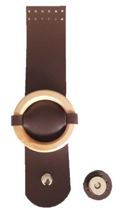 Angel Çanta Aksesuar Tek Kat Suni Deri Ahşap Tokalı Kahverengi Kapak