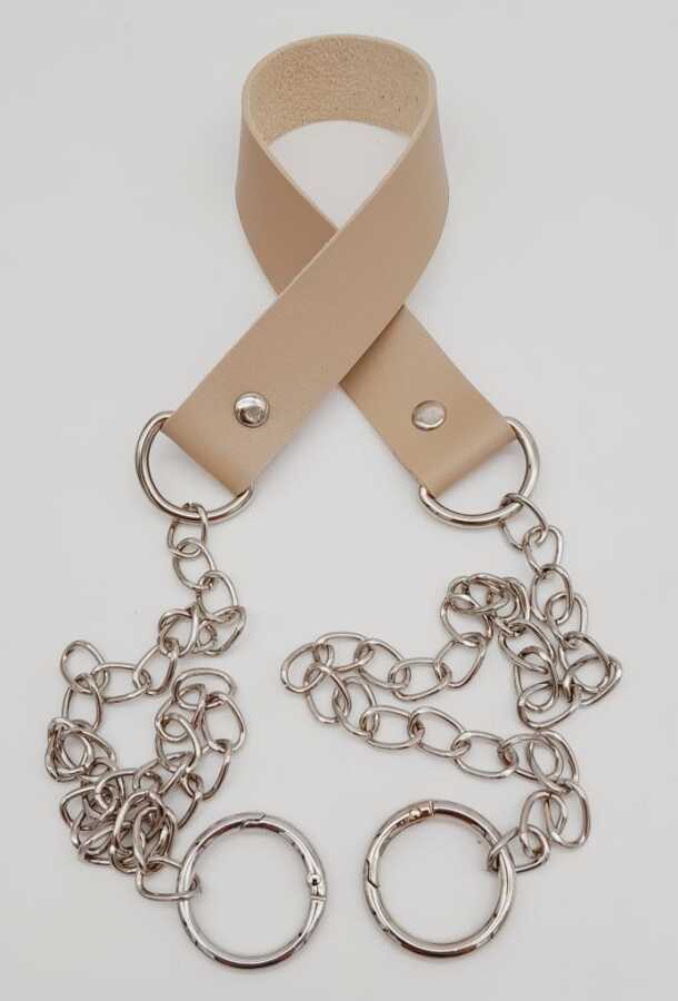 Deri Kısım Uzunluk: 38 cm Deri Genişlik: 2,5 cm Halkalar Hariç Toplam Uzunluk: 100 cm Zincir: Gümüş Renk Tek Kat Suni Deriden üretilmiştir.